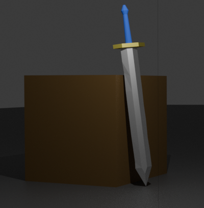 Start with a cubeLoop cut in the middle, then extrude two edgers on opposing sidesAdd another loop cut, then move the center vertice up to create the top of the sword. Then move the two vertices at the center up to create the triangle that are on the sides.Move the bottom face down to elongate the tip of the blade.Extrude the bottom face to add the length to the sword.To create the hilt, I did the same thing as the sword witht he loop cuts and extrudign the edges.I aded a cylinderDeleted the top face and made it longer.I created the hilt by selecting the ring of edges and extruding them, then I scaled the extruded faces. Then I did the same thing to close up the pommel of the swordScaled this edge to make it more realistic.Added loop cuts and moved the vertices to make the sword imperfectAdded the textures to the sword, I made the hilt and blade metallic. I also added a box for it to rest on.Final Render