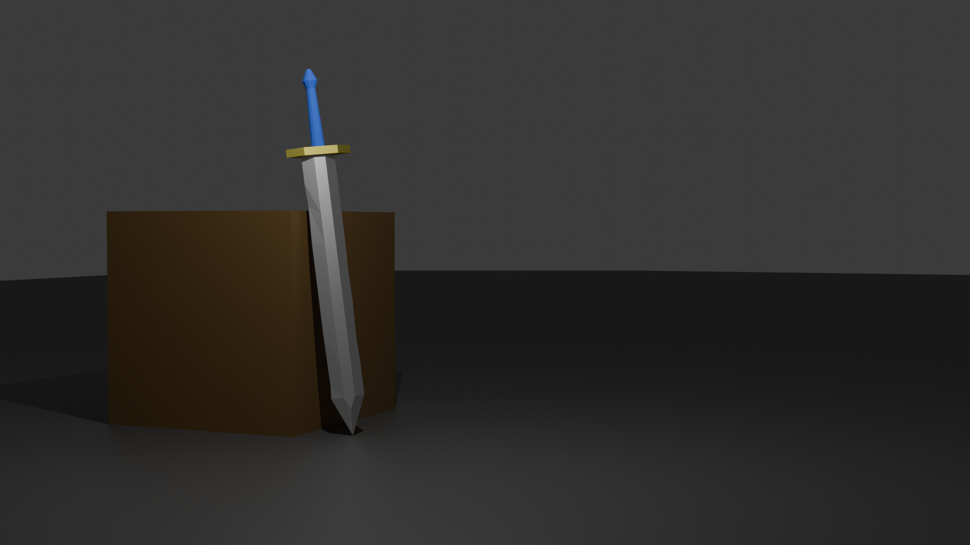 Start with a cubeLoop cut in the middle, then extrude two edgers on opposing sidesAdd another loop cut, then move the center vertice up to create the top of the sword. Then move the two vertices at the center up to create the triangle that are on the sides.Move the bottom face down to elongate the tip of the blade.Extrude the bottom face to add the length to the sword.To create the hilt, I did the same thing as the sword witht he loop cuts and extrudign the edges.I aded a cylinderDeleted the top face and made it longer.I created the hilt by selecting the ring of edges and extruding them, then I scaled the extruded faces. Then I did the same thing to close up the pommel of the swordScaled this edge to make it more realistic.Added loop cuts and moved the vertices to make the sword imperfectAdded the textures to the sword, I made the hilt and blade metallic. I also added a box for it to rest on.Final Render
