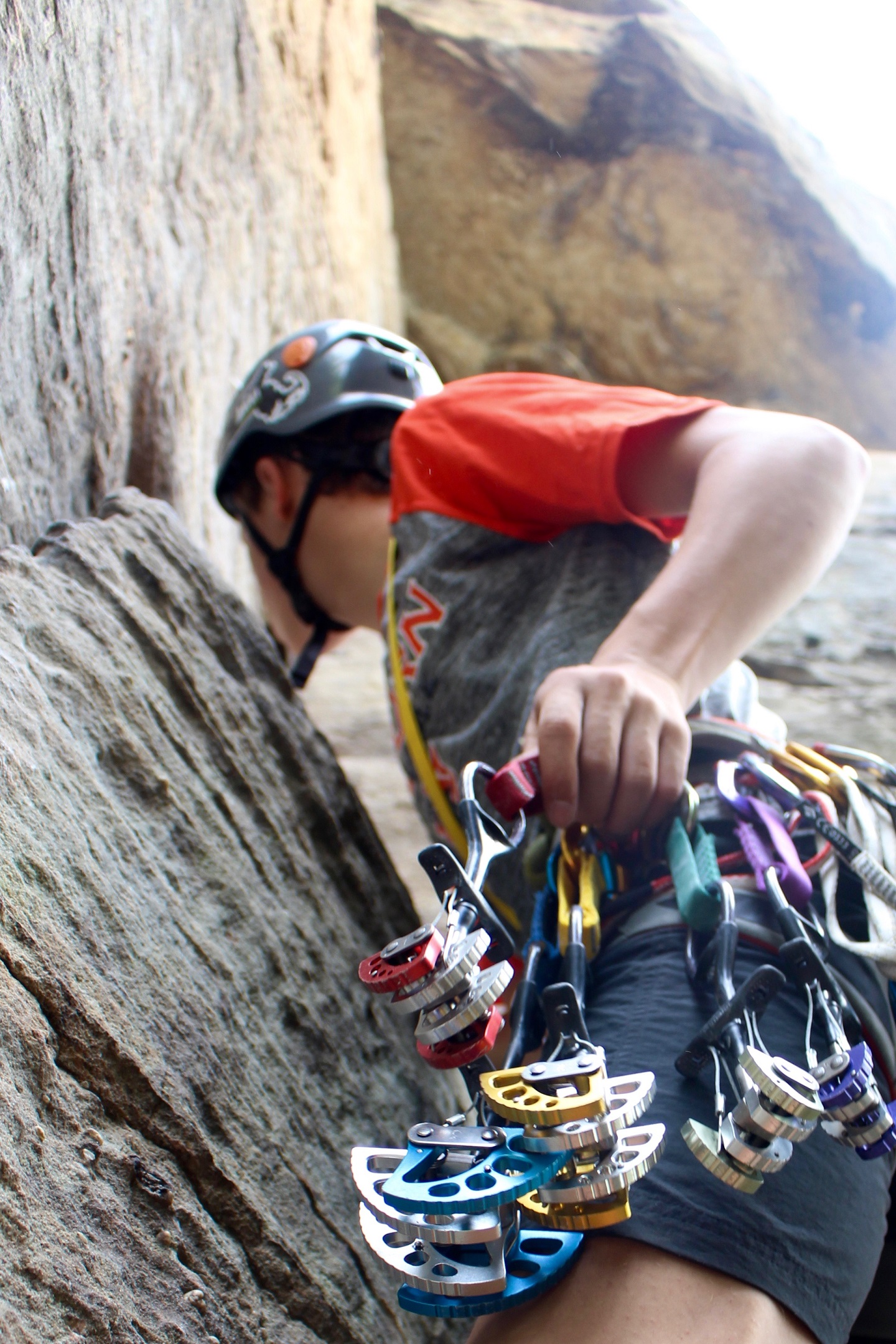 Trad climbing otherwise known as traditional climbing is very similar to sport climbing. In fact they share every single property, except safety. In trad climbing, you are expected to bring your own bolts to temporarily place in the mountain/route that you are climbing. This adds a layer of difficulty seeing as you now have to find a solid spot to put your safety or else you can risk injury. This type of climbing is also exclusive to the outdoors because of this quirk. People trad climbing because they believe it's the tradition and how climbing should be done, that's why it's traditional, or because they don't want to harm the mountain by placing permanent blots on its walls.